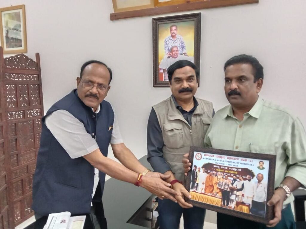 ಬೆಂಗಳೂರಿನಲ್ಲಿ ನಡೆದ ಕರ್ನಾಟಕ ಮಾಧ್ಯಮ ಪತ್ರಕರ್ತ ಸಂಘದ ರಾಜ್ಯ ಸಂಘ ಉದ್ಘಾಟನೆ ಸಮಾರಂಭದಲ್ಲಿ ಭಾಗವಹಿಸಿದ್ದ ಮುಖ್ಯಮಂತ್ರಿಗಳ ಮಾಧ್ಯಮ ಸಲಹೆಗಾರ ರಾದ ಕೆ.ವಿ. ಪ್ರಭಾಕರ್ ರವರಿಗೆ ನಗರ- ಗ್ರಾಮೀಣ ಭಾಗದ ಪತ್ರಕರ್ತರ ಬೇಡಿಕೆಗಳು ಬಹಳ ವರ್ಷಗಳಿಂದ ನೆನೆಗುದಿಗೆ ಬಿದ್ದಿದ್ದು, ಗ್ರಾಮೀಣ ಭಾಗದ ಪತ್ರಕರ್ತರಿಗೆ ನೀಡುವ ಬಸ್ ಪಾಸ್ ಹಾಗೂ ಆರೋಗ್ಯ ವಿಮೆ. ಹಿರಿಯ ಪತ್ರಕರ್ತರ ನಿವೃತ್ತಿ ವೇತನ ಸೇರಿದಂತೆ ಪತ್ರಿಕೆಗಳ ಮಾಧ್ಯಮ ಪಟ್ಟಿ ಮತ್ತು ಮಾನ್ಯತೆ ಕಾರ್ಡ್ ಇನ್ನಿತರ ಸಮಸ್ಯೆಗಳ ಬಗ್ಗೆ ಸಭೆಯಲ್ಲಿ ಗಮನಕ್ಕೆ ತರಲಾಗಿತ್ತು.
